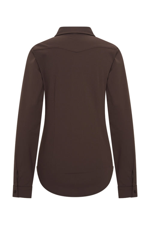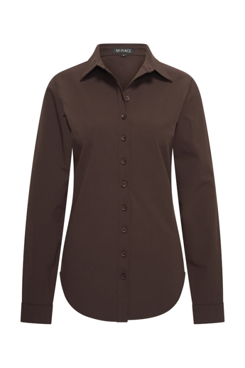 Deze comfortabele blouse is perfect voor naar kantoor of voor een vrije dag. De donkerbruine is makkelijk te combineren met andere items.