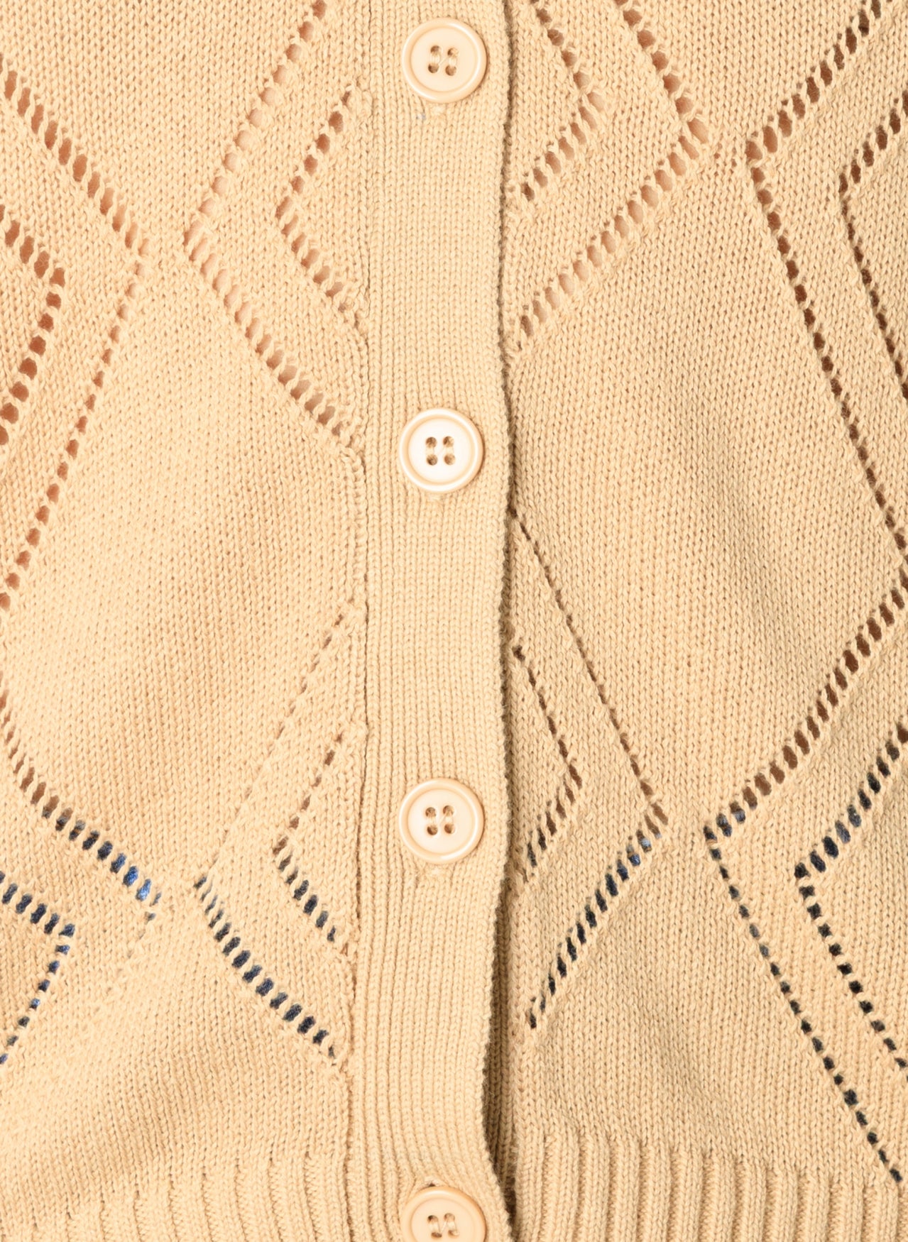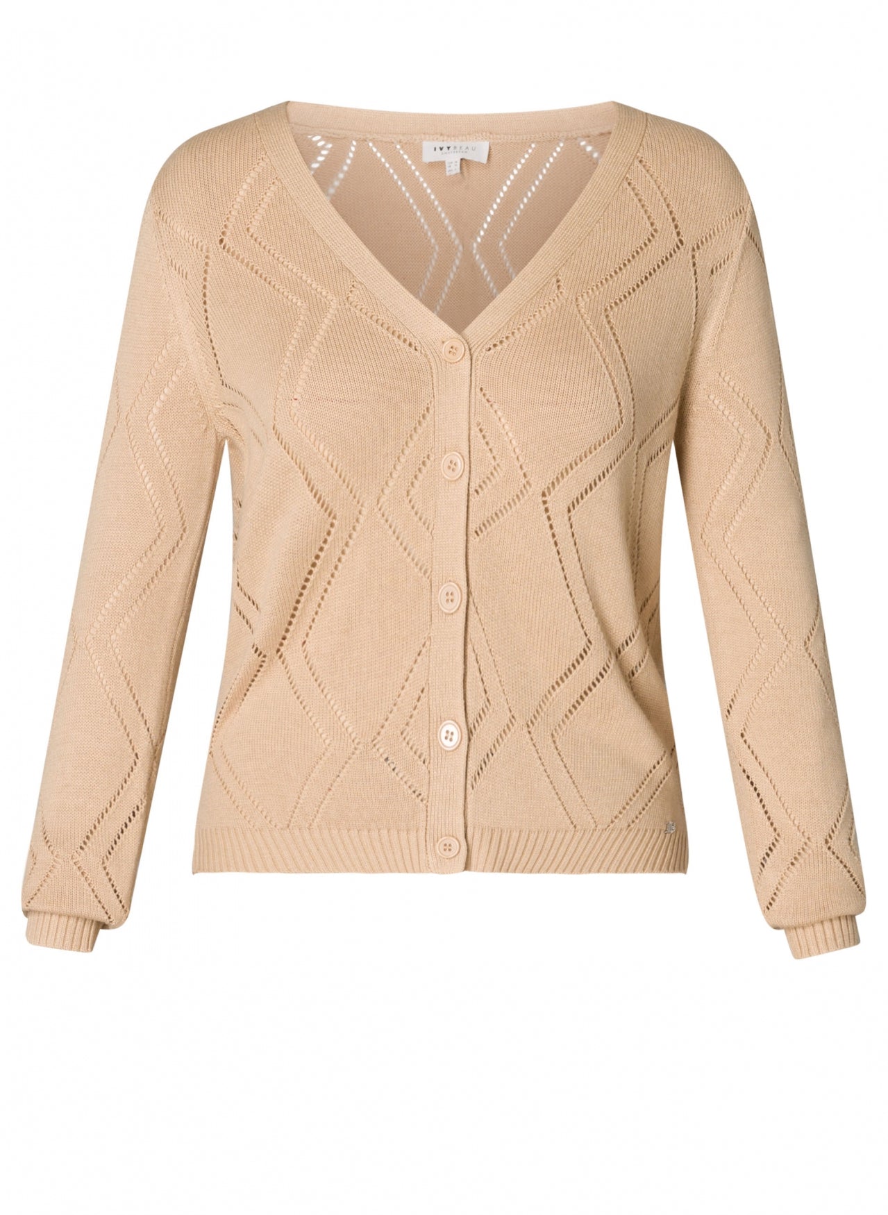 Deze cardigan van Ivy Beau is gemaakt van een comfortabele katoen-polyestermix en heeft een subtiel opengewerkt zigzagpatroon. Eileen heeft een klassieke V-hals, knoopsluiting en ribboorden.