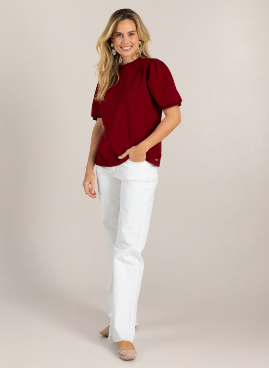 Simpel, maar met mooie details. De plooitjes bij de schouders geven deze sweater een speelse vorm, terwijl de gladde jersey zorgt voor een comfortabele feel.