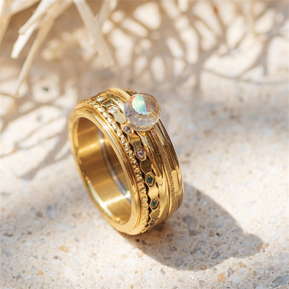 Het leuke aan dit concept is dat je je eigen ring open kan draaien en zo je eigen combinaties aan vulringen erop kan draaien.