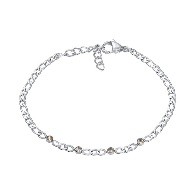 - Zilverkleurige armband is voorzien van vier licht zwartkleurige zirconia’s