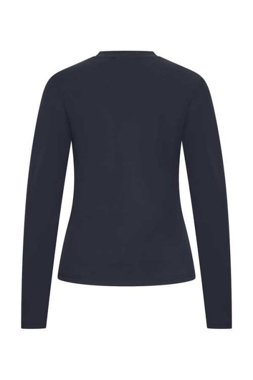 Dit basic shirt met ronde hals zit super comfortabel en heeft een mooie, donkerblauwe kleur.