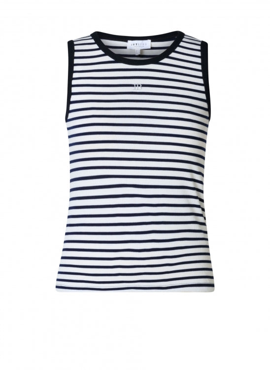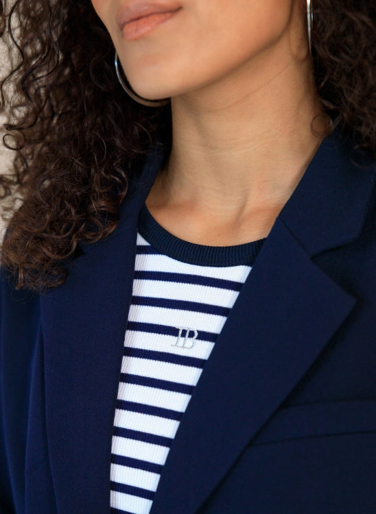 Een easy favourite met een frisse look. De ribstructuur en streepjes geven deze top net dat beetje extra, terwijl de zachte viscosemix zorgt voor comfort van ’s ochtends tot ’s avonds. Draag ’m solo of onder een blazer voor een relaxte, moderne outfit.